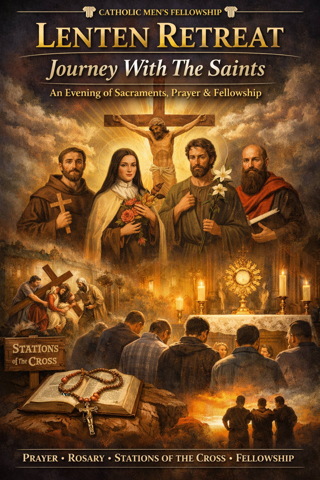 The retreat will include talks on various saints, praying the Rosary, Stations of The Cross, and fellowship with other Men on a mission for Christ.